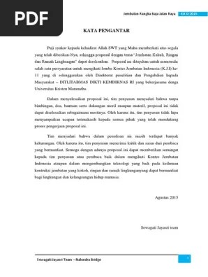 Kompetisi jembatan indonesia dan kompetisi bangunan gedung indonesia contoh proposal jembatan. Jembatan sebagai suatu infrastruktur jaringan jalan merupakan bagian dari peningkatan perekonomian baik dalam skala daerah maupun nasional.